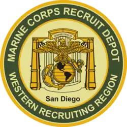 Marine Corps Recruit Depot San Diego (MCRD San Diego) is a United States Marine Corps military installation in San Diego, California. It lies between San Diego Bay and Interstate 5, adjacent to San Diego International Airport and the former Naval Training Center San Diego.[3] MCRD San Diego's main mission is the initial training of enlisted male and female recruits living west of the Mississippi River. Over 21,000 recruits are trained each year. As of 2022, 1.5 million recruits have completed their boot camp training at the depot.[4] It is also the home to the Marine Corps' Recruiter School and Drill Instructors School.