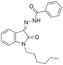 - ^ a b Diaz P, Xu J, Astruc-Diaz F, Pan HM, Brown DL, Naguib M (August 2008). "Design and Synthesis of a Novel Series of N-Alkyl Isatin Acylhydrazone Derivatives that Act as Selective Cannabinoid Receptor 2 Agonists for the Treatment of Neuropathic Pain". Journal of Medicinal Chemistry. 51 (16): 4932–4947. doi:10.1021/jm8002203. PMID 18666769.