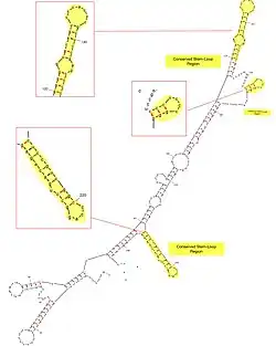 Since there is only one exon and no introns within the MFSD6L gene, There is no splicing performed on the MFSD6L mRNA.[10] Translation of the MFSD6L protein initiates at the end of the 5' UTR, which is the first 245 nucleotides of the MFSD6L mRNA. There are conserved stem-loop regions across mammalian orthologs, which infer possible miRNA binding sites.