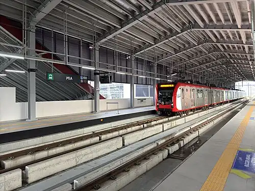 MIA Road station, also known as MIA station,[1][2] is an elevated Light Rail Transit (LRT) station located on the LRT Line 1 (LRT-1) system in Parañaque. It is part of the Line 1 Cavite Extension Project, which opened to the public on November 16, 2024. Situated at the intersection of Roxas Boulevard and Seaside Drive, which is the physical continuation of the adjacent NAIA Road, it serves Barangay Tambo and Entertainment City.