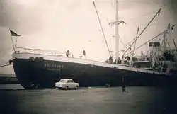 MV Harambee was a German-built general cargo ship, initially ordered as the Reg IV. Bought while under construction by a different company, she was launched in 1953 and served with the German Merchant Navy under the name Belgrano, making voyages to South America until 1966. She was sold to an African company, renamed Harambee, and served for another thirteen years, before being sold once more, renamed Arambee, and scrapped in Taiwan shortly afterwards.