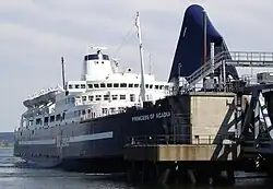 MV Princess of Acadia was a roll-on/roll-off passenger and motor vehicle ferry that traveled between Digby, Nova Scotia and Saint John, New Brunswick, crossing the Bay of Fundy. The vessel held 650 passengers and could transport 180 automobile equivalents.[1] On July 28, 2015 the ship was replaced by MV Fundy Rose.