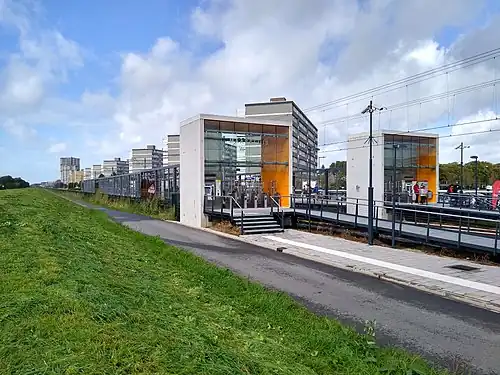 NS stopped operating the line, including Maassluis West railway station, on 1 April 2017 to enable conversion for metro train operations. The station was reopened by RET on 30 September 2019, with preview services operating on 28 September.[1]