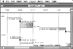 MacProject was a project management and scheduling business application released along with the first Apple Macintosh systems in 1984. MacProject was one of the first major business tools for the Macintosh which enabled users to calculate the "critical path" to completion and estimate costs in terms of money and time. If a project deadline was missed or if available resources changed, MacProject recalculated everything automatically.
