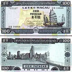 - ^ Macau new 100-pataca centennial anniversary commemorative notes confirmed BanknoteNews.com. Retrieved 2012-04-26.
