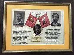 Under the "Macedonia for the Macedonians" slogan IMARO expressed resentment felt against the irredentist aspirations over Macedonia as much as toward the Ottoman rule, and anticipated that it would restrain the region's partition by the warring Balkan states.[21] Thus, in order to enforce the idea of autonomy,[22] IMARO changed its exclusively Bulgarian character,[23] and opened it to all Macedonians and Thracians regardless of nationality, who wished to participate in the anti-Ottoman movement.[24] In an article published in June 1902, the IMARO revolutionaries promoted the idea of autonomy and the slogans "Macedonia for the Macedonians".[25] The Organization gave a guarantee for the preservation of all national communities there, and insisted that the Bulgarians could be proud of their tolerance, in opposition to Romanians, Serbs and Greeks. They also planned that the administration of the future autonomous Macedonia will rely on the Bulgarian majority. Those revolutionaries saw the future autonomous Macedonia as a multinational polity, and "Macedonian" was an umbrella term covering Greeks, Bulgarians, Turks, Aromanians and Megleno-Romanians, Albanians, Serbs, etc.[26] However, there was no clear concept about the ultimate outcome of the autonomy, some of the members, especially those with leftist inclination, saw it as independent Macedonia, while others saw it as step for the incorporation of Macedonia into the Bulgarian state.[27][28][29][30] The British Consul in Skopje Raphael Fontana wrote on the occasion of the Ilinden Uprising in 1903 that the revolutionaries were working for a general Bulgarian uprising in order to reach their goal of "Macedonia for the Macedonians", understood to mean "Macedonia for the Bulgarians".[31]