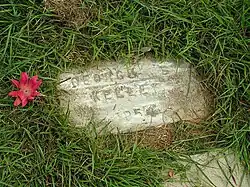 Machine Gun Kelly spent his remaining 21 years in prison. During his time at Alcatraz, he got the nickname "Pop Gun Kelly". According to fellow inmate Dale Stamphill, the nickname originated because "He told big fish stories. The cons called him 'Pop Gun Kelly' after cork guns that were popular with kids...the guys didn't take him seriously...." This may have stemmed from the fact that, in addition to his exaggerated tall tales, Kelly was a model prisoner and did not act like the brutal gangster his wife, the media, and FBI had made him out to be.[17][18][19][20] He spent 17 years on Alcatraz as inmate number 117, working in the prison industries, continuing to boast and exaggerate his past escapades to other inmates, and was quietly transferred back to Leavenworth in 1951. He died of a heart attack at Leavenworth on July 18, 1954, his 59th birthday, and was buried at Cottondale Texas Cemetery in Kathryn Kelly's stepfather's family plot[21][22] with a small headstone marked "George B. Kelley 1954".[23] Kathryn Kelly was released from prison in 1958 and lived in relative anonymity in Oklahoma under the assumed name "Lera Cleo Kelly" until her death in 1985 at the age of 81.[24]