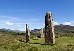 Around 1.2 kilometres to the east of the Machrie Moor Stone Circles, near the B880 road (grid reference NR92443225), is another stone-setting consisting of three granite boulders and which perhaps originally consisted of four stones.[19]
