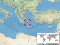 Milos vipers are found on the Greek islands of the Cyclades Archipelago in the Aegean Sea: Milos, Siphnos, Kimolos and Poliaigos.[1][2][3] The type locality is given as "Insel Milos ".[2][5]