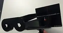 • "Hold the device up to your eyes and look into the eye piece as if you're reading a book"