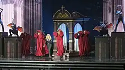 Various Madonna's concerts were condemned by religious adherents, including radical Orthodox believers.[76][111] For instance, during her 1993's Girlie Show, Plinio Corrêa de Oliveira, a Brazilian traditional Catholic activist reported protests and "rebuff" in countries such Germany and Argentina.[112] She angered many Polish religious adherents in various of her stops when she toured.[113] According to Evangelical Times during her Dutch stop of the Confessions Tour, police arrested a 63-year-old priest who admitted to making a hoax call in an attempt to disrupt the event. A bomb threat was also reported.[114] In January 2023, Madonna sparked again outrage among Christian community after doing an all-female Last Supper photoshoot, and also for channeling Virgin Mary as Our Lady of Sorrows, on the first Vanity Fair's European "Icon issue".[115] The European Conservative headlined, that her photoshoots "Reveals Deep Occult Roots of the Entertainment Industry".[116]
