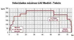 The LAV Madrid-Toledo is a Spanish high-speed rail line that connects the cities of Madrid and Toledo, a distance of approximately 74 kilometres (46 mi).