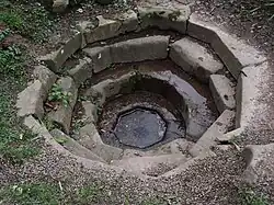 The ruins of a Roman temple possibly associated with a high-status Roman villa, which may have connections to Magnae, lie inside the Weir Garden by the River Wye. There is an octagonal cistern filled by a spring, and a ruined buttress by the river. These are the highest standing Roman ruins in Herefordshire.[8][9]