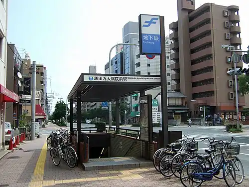 Maidashi-Kyūdaibyōinmae Station (馬出九大病院前駅, Maidashi-kyūdai-byōin-mae-eki) is a subway station on the Fukuoka City Subway Hakozaki Line in Fukuoka, Japan.