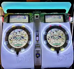 In July 2019, Sega released Maimai DX, a reworked version of the game which featured new, second-generation cabinets.[6] After the pre-DX 'classic' cabinets were taken offline in September 2019, many made their way to Europe and North America running the Finale version as imports.[7] In the US, several of these cabinets were installed at Round 1 locations in 2021, while in Europe, arcades such as Arcade Club began to install them starting around 2020.[8]