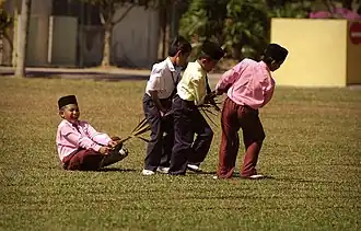 ![]() Malay children playing Tarik Upih Pinang, a traditional game that involves dragging a palm frond | |