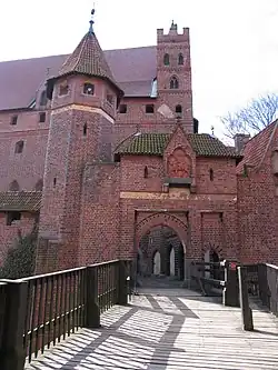 The sale of the fortress in Malbork by mercenary forces is mentioned in Stefan Żeromski's novel Wiatr od morza in the chapter Bitwa pod Świecinem, described as "treachery that struck the Order on the head".[41] The seizure of Malbork by the Kingdom of Poland is mentioned in the last chapter (LII) of Henryk Sienkiewicz's novel The Knights of the Cross, described as "a fortunate moment".[42]