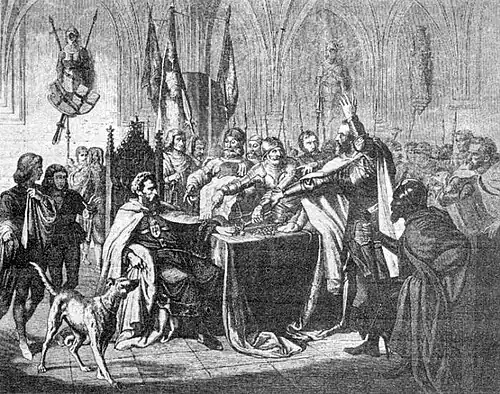 ![]() Grand Master Ludwig von Erlichshausen's negotiations with the commanders of the mercenary army in the Malbork fortress. | |