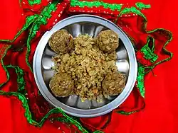 Malida (Pashto 'ماليده'; alternatively spelled as Maleeda, called, Urdu: چُوری, Hindi: चूरी, or ملیدہ in Hyderabadi Urdu) is a traditional sweet dessert popular among Pashtun and Persian households in Afghanistan and Pakistan, popular among people in northern India and Pakistan, as well as Hyderabad Deccan. It is made from leftover bread (called Dodei by Pashtuns and Parathas or Rotis in desi households) that is crumbled and pounded, then stir fried with ghee, sugar, dried fruits, and nuts. Malida is often given to young children in the winter as ghee is believed to warm the body and prevent colds, and it is also a traditional dish for some Muslims on the last Wednesday of the Islamic month Safar. Malida is a common way to use up extra parathas or rotis.[1]