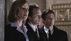 "Manchester" is the two-part third-season premiere of the American political drama television series The West Wing. The episodes aired on October 10 and 17, 2001 on NBC. The episodes deal with President Bartlet's decision to run for re-election, and the activities of the weeks leading up to his official announcement. Both parts were written by Aaron Sorkin and directed by Thomas Schlamme, and the episodes contain the first appearances by Ron Silver, Evan Handler and Connie Britton.[1] These episodes also mark the first episode where Stockard Channing is added to opening credits, marking that she became a regular character this season.[2] The second episode was an Emmy nominee for Outstanding Art Direction for a Single-Camera Series. It also earned a Golden Reel Award nomination for Best Sound Editing in a Television Series.[2]