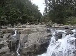 Mangakarengorengo River at McLaren Falls, at the confluence with the Mangapapa River | |