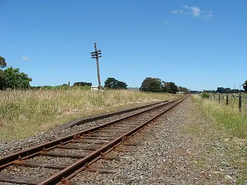 Mangamaire railway station, looking south towards Tutaekara Road. 28 December 2008. | |||||