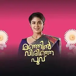 Manjil Virinja Poovu (transl. Flower that bloomed in snow) is an Indian Malayalam-language television drama. It aired from 4 March 2019 to 21 July 2024 on Mazhavil Manorama and streams on ManoramaMax.[1] The show is produced by Prabha Unnithan under the banner of Sree Movies. It stars Malavika Wales in the main lead role along with Rekha Ratheesh, Yuva Krishna and Akhil Anand.[2] It is one of the top-rated TV series in Mazhavil Manorama since its inception.[3]