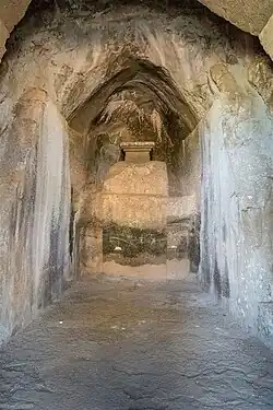 In the outer wall of another of these cells there have been a standing (Kayotsarga) and a sitting figure of Tirthankara, but these are now almost obliterated.[12][3]