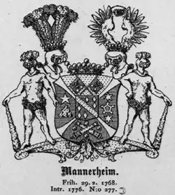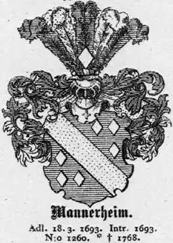 The Mannerheim family (originally Marhein) also spelled von Mannerheim is the name of a prominent noble family of German origin, which was part of Finnish, Swedish, and German nobility.[1]