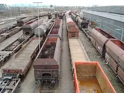 In the 19th century, Mannheim was a transhipment point for goods due to its important harbour and as an important industrial location. This also required the construction of a marshalling yard. Thus, the city's first pure marshalling yard was built in the Lindenhof district in 1863. Its capacity was no longer sufficient for the growing city and the port at the turn of the century, and a new building became necessary. Thus, in 1906, a new two-sided marshalling yard was completed at its present location as a joint station of the Baden and Prussian-Hessian railroads (cost: 18 million marks).[2] During World War II, the station was temporarily expanded, but was severely damaged at the end of the war. After its repair, it was expanded in the 1960s and 1970s,[3] and its basic layout has remained largely unchanged since then. However, the shunting technology was modernized at the beginning of the 21st century.