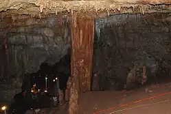 Manot Cave (Hebrew: מערת מנות Me'arat Manot) is a cave in Western Galilee, Israel, discovered in 2008.[2] It is notable for the discovery of a skull that belongs to a modern human, called Manot 1, which is estimated to be 54,700 years old (U–Th dating of the calcitic crust on the Manot 1 calvaria and of speleothems in the cave). The partial skull was discovered at the beginning of the cave's exploration in 2008. Its significance was realised after detailed scientific analysis, and was first published in an online edition of Nature on 28 January 2015.[3][4] This age implies that the specimen is the oldest known human outside Africa, and is evidence that modern humans lived side-by-side with Neanderthals.[5] The cave is also noted for its "impressive archaeological record of flint and bone artefacts".[5] Geologically, it is an "active stalactite cave".[6]