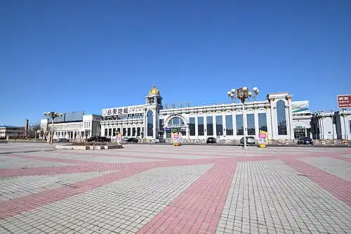 Manzhouli railway station (simplified Chinese: 满洲里站; traditional Chinese: 滿洲里站; pinyin: Mǎnzhōulǐ Zhàn), formerly known as Manchzhuriya station in Russian, is a railway station in Manzhouli, Hulunbuir, Inner Mongolia, China. It is managed by the China Railway Harbin Group, and as one of the stations of Harbin–Manzhouli Railway.
