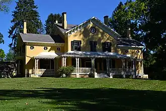 Maple Grove is a historic estate located at Poughkeepsie, Dutchess County, New York. The estate consists of eight contributing buildings: the main house, farmer's cottage (c. 1850), barn (c. 1850), carriage barn (c. 1850), garage (c. 1850), shed, and two cottages (c. 1830). Also on the property is a pair of contributing sandstone gateposts (c. 1850). The main house was built in 1850 in the Italianate style and remodeled in 1891. It is constructed of painted red brick and has a 2+1⁄2-story, three-bay, main block flanked by 2-story, three-bay-wide wings. It has a large, 2-story rear kitchen wing. It features a prominent 1-story open wood porch.[2]