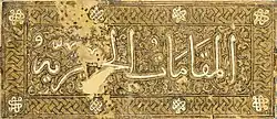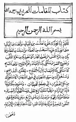 ![]() Title "Al-maqāmāt al-Harīriyya", Bibliothèque Nationale de France (Arabe 5847).[1] | |