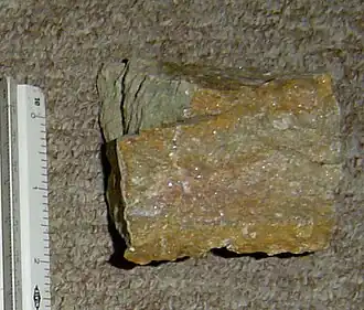 A piece of the Fort Atkinson along Aux Sable Creek in Illinois, showing the coarse texture and multitude of colors.