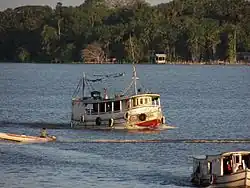 The Marajó várzea is at the mouth of the Amazon River. It covers coastal areas of the states of Pará and Amapá, with an area of 8,857,759 hectares (21,888,000 acres).[1] Water levels are affected by freshwater flowing down the river and by tidal flows from the Atlantic Ocean.[2] The várzea forest in the ecoregion starts where the Xingu River joins the Amazon, which begins to broaden out. It covers the west of Marajó Island and many smaller islands in the Amazon channel, as well as parts of the mainland to the north and south of the river mouth including a small area of French Guiana.[3] The nutrient-rich sediments from the river are deposited on the islands.[3]