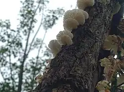 | Basidiocarps of Marasmiellus inoderma on a banana pseudostem | |