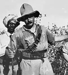 In June 1940, immediately after Italy entered into the Second World War, Serrazanetti enlisted in the Royal Corps of Colonial Troops, participating in the following month in the conquest of the Sudanese town of Kassala. In early 1941 the British counteroffensive resulted in the collapse of the Italian empire in East Africa; on 3 April 1941 Addis Ababa was abandoned, with the Duke of Aosta, Viceroy of Italian East Africa, retreating towards the Amba Alagi with his staff and surviving troops. The viceregal command, while leaving Addis Ababa, decided to transfer some important documents to Jimma, and Serrazanetti volunteered for the mission. On 4 April he left for Jimma at the head of a group of six Italian soldiers, but after marching for eighty kilometres, the party ran into a group of Ethiopian guerrillas, which blocked their way. Serrazanetti handed over the documents to his soldiers, ordering them to continue towards Jimma (where they safely arrived) on a different path, and remained behind to keep the Arbegnoch busy, armed with two rifles and some hand grenades. His lifeless body, surrounded by Ethiopian spears, was found two days later by passing Italian trucks.[19][20]