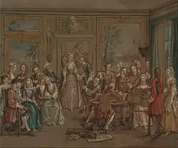 Marcellus Laroon the Younger (2 April 1679 – 1 June 1772) was an English painter and draughtsman of French origin.[1] He specialized in social genre scenes, and he frequented the world of actors and painters around Covent Garden in London that he painted. George Vertue, a contemporary who knew him well, said he painted for pleasure rather than profit.[2]