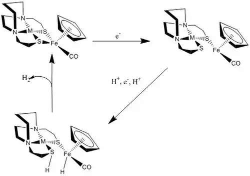 - ^ Ghosh, Pokhraj; Quiroz, Manuel; Wang, Ning; Bhuvanesh, Nattamai; Darensbourg, Marcetta Y. (2017). "Complex of as platform for exploring cooperative heterobimetallic effects in HER electro catalysis". Dalton Transactions. 46 (17): 5617–5624. doi:10.1039/c6dt04666e. PMID 28174781.