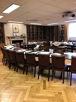 Roger Beck gave permission to the Royal Society of Medicine's council to form an extension of the library from the laboratory in 1923. A prerequisite was that this library continue to be associated with Marcus Beck. The Medical Research Council acquired the no longer needed medical equipment and the Honorary librarian took over responsibility for the new extended library. Medical portraits and engravings, as well as the society's old and rare books and manuscripts, were housed in this library. The room continues to be used as a council meeting room and a portrait of Beck hangs over the fireplace.[7][8]