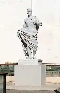 In 152 BC he assumed his third Consulship and replaced the previous Consul, Quintus Fulvius Nobilior, in his command against the Celtiberians in Spain.[2] Having arrived with reinforcements, he negotiated the surrender of Ocilis and defeated the Nergobriges, before they and the other Celtiberian tribes of the Arevaci, the Belli, and the Titthi, sued for peace with Rome. Marcellus sent ambassadors back to the Senate in Rome, urging them to accept the peace proposals and end the long war in Spain. The Senate however, refused and began gathering a new army to be again sent to Spain the following year, appointing Lucius Licinius Lucullus, Consul-Elect for 151 BC, to replace Marcellus once his term as Consul expired.[3] Upon learning of this, Marcellus nevertheless remained resolved to make peace in Spain and end the war before Lucullus' arrival. However, the Arevaci then attacked Nergobriga, the city of the Nergobriges, and broke the truce agreed with Marcellus. In retaliation, the Romans marched to besiege the Arevaci capital of Numantia; however, before the assault could begin, the Numantines re-opened negotiations for peace and, in a conference with Marcellus, the Numantine leader, Litenno, offered to make peace with Rome on behalf of the Arevaci, Belli and Titthi. Delighted, Marcellus accepted the offer and, the tribes having handed over the required hostages and money as guarantees that they would not break their promise, concluded the war in Spain before Lucullus and his army arrived.[4]