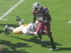 South Carolina then played a home game against the Naval Academy, and in a 24–21 game Lattimore ran 246 yards, and also scored three touchdowns in the game.[15] The following weekend, South Carolina played host to SEC East foe Vanderbilt. Lattimore had his first sub-100-yard rushing game of the season, running for just 77 yards on 20 carries but was able to add a 22-yard touchdown.[12] He also caught three passes for 73 yards, scoring on a 52-yard reception, leading his team to a 21–3 win and a 4–0 start.[16] He tore a knee ligament on October 15 against the Mississippi State Bulldogs and it was announced that Lattimore would miss the remainder of the 2011 season due to the injury.[17]