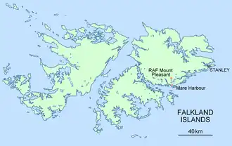 - ^ Falkland Islands Portal. "Defence". Archived from the original on 26 April 2006. Retrieved 19 June 2006.