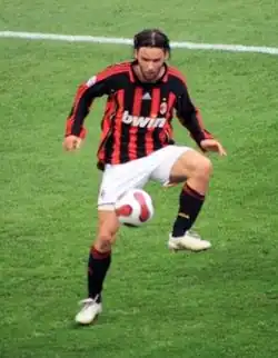 By December, he began playing at left-back.[45][46][47][48][49] Later, Jankulovski scored two goals in the next two matches against Cosenza and Pistoiese between 9 December 2001 and 14 December 2001.[50][51] After missing two missing two matches due to injury, he made a comeback by scoring in a 1–1 draw against Cagliari on 24 February 2002.[52][53][54][55][56] Jankulovski then scored in a 1–1 draw against Palermo,[57] and in a 2–1 loss against Siena.[58] Despite suffering injuries throughout the season, he made 33 appearances in all competitions, scoring six times.[59][60][61]