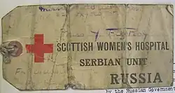 Luggage label from a pack belonging to a Scottish Women's Hospitals nurse