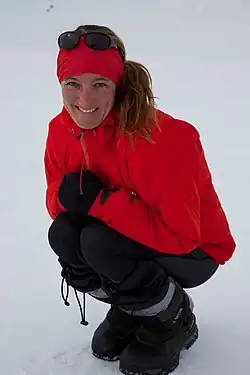Maria Leijerstam is a British polar adventurer. In 2013 she became the first person to cycle to the South Pole from the edge of the continent.[1][2] Leijerstam started her expedition on the Ross Ice Shelf at the edge of the Antarctic continent, and cycled for 10 to 17 hours each day with no rest days, and the total distance cycled was 638 km (396 mi). Leijerstam's cycle was a three-wheeled design, and she reached the pole faster than any previous skiing expedition.
