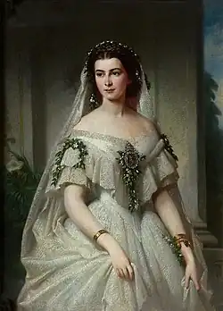 Maria Sophie Amalie, Duchess in Bavaria (4 October 1841 – 19 January 1925) was the last Queen of the Two Sicilies as the wife of Francis II of the Two Sicilies. She was one of the ten children of Maximilian Joseph, Duke in Bavaria and Princess Ludovika of Bavaria. She was born as Duchess Maria Sophia in Bavaria. She was the younger sister of the better-known Elisabeth of Bavaria ("Sisi") who married Emperor Franz Joseph I of Austria.