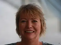 A feminist, she favours affirmative action for women and opposes cash-for-care benefits for the parents of toddlers which she believes hinders gender equality and integration of immigrant women and their children.[5] Simonsen has expressed concern that women who are public figures are subject to more threats and harassment both online and in real life than men and that this causes women to stay away from public debate.[6] Having experienced much internet harassment as well as real life threats, Simonsen has voiced concern that women in public life experience more and graver cyberbullying and threats than men, and that this may cause many women to stay out of public debate.[7] She opposes the Norwegian monarchy and the Norwegian state church.[2]