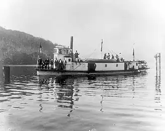 Marion was built at Golden, BC in 1888 for Frank P. Armstrong by Alexander Watson, a shipbuilder from Victoria, BC. Klahowya's engines were manufactured by Polson Iron Works.[2][3] Marion had a deckhouse and a wheelhouse but no passenger cabin. Passengers simply perched wherever they could on the boat deck.[4]